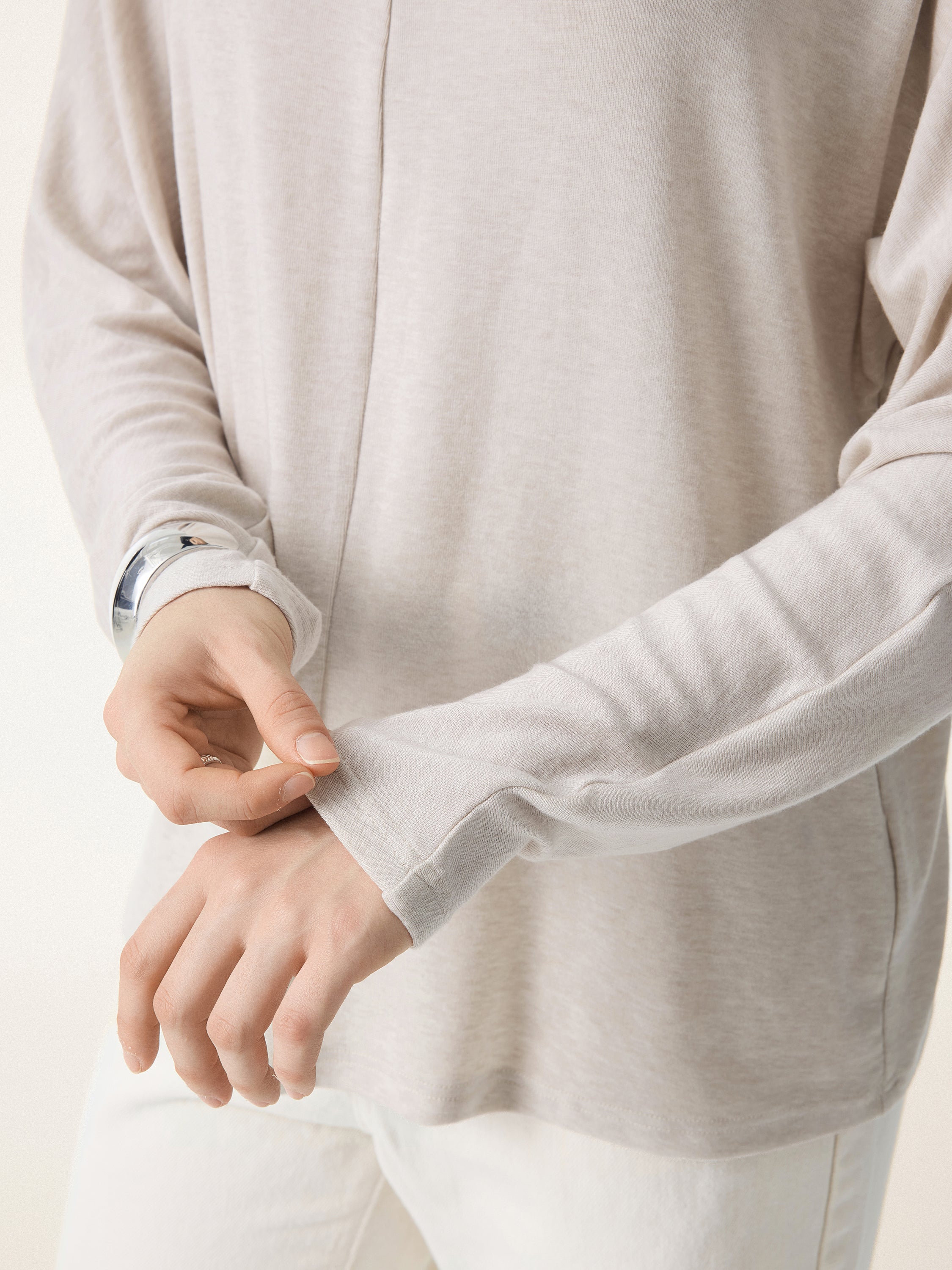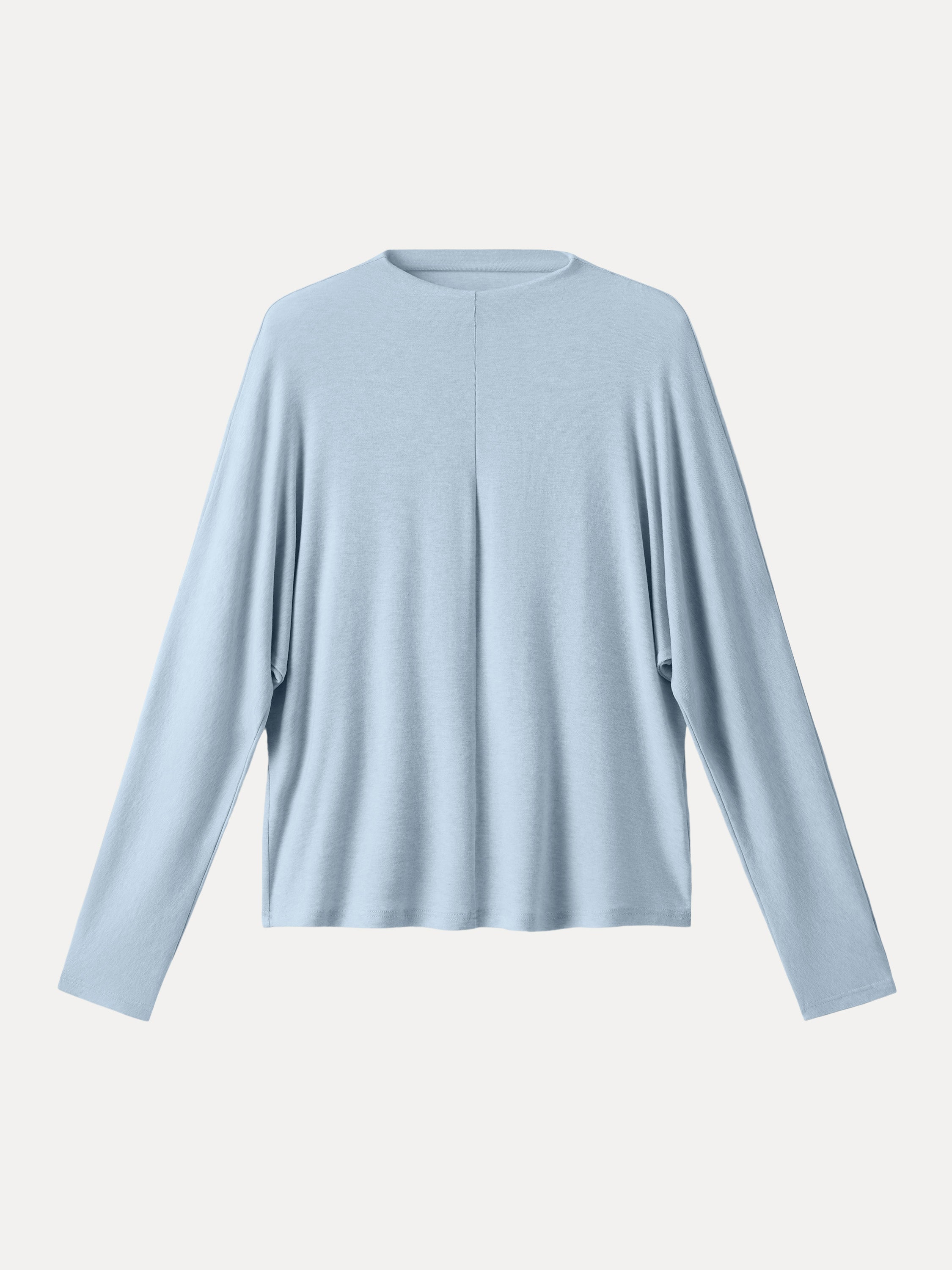 Lyocell Cashmere Relaxed Mockneck Batwing Sleeve Top
