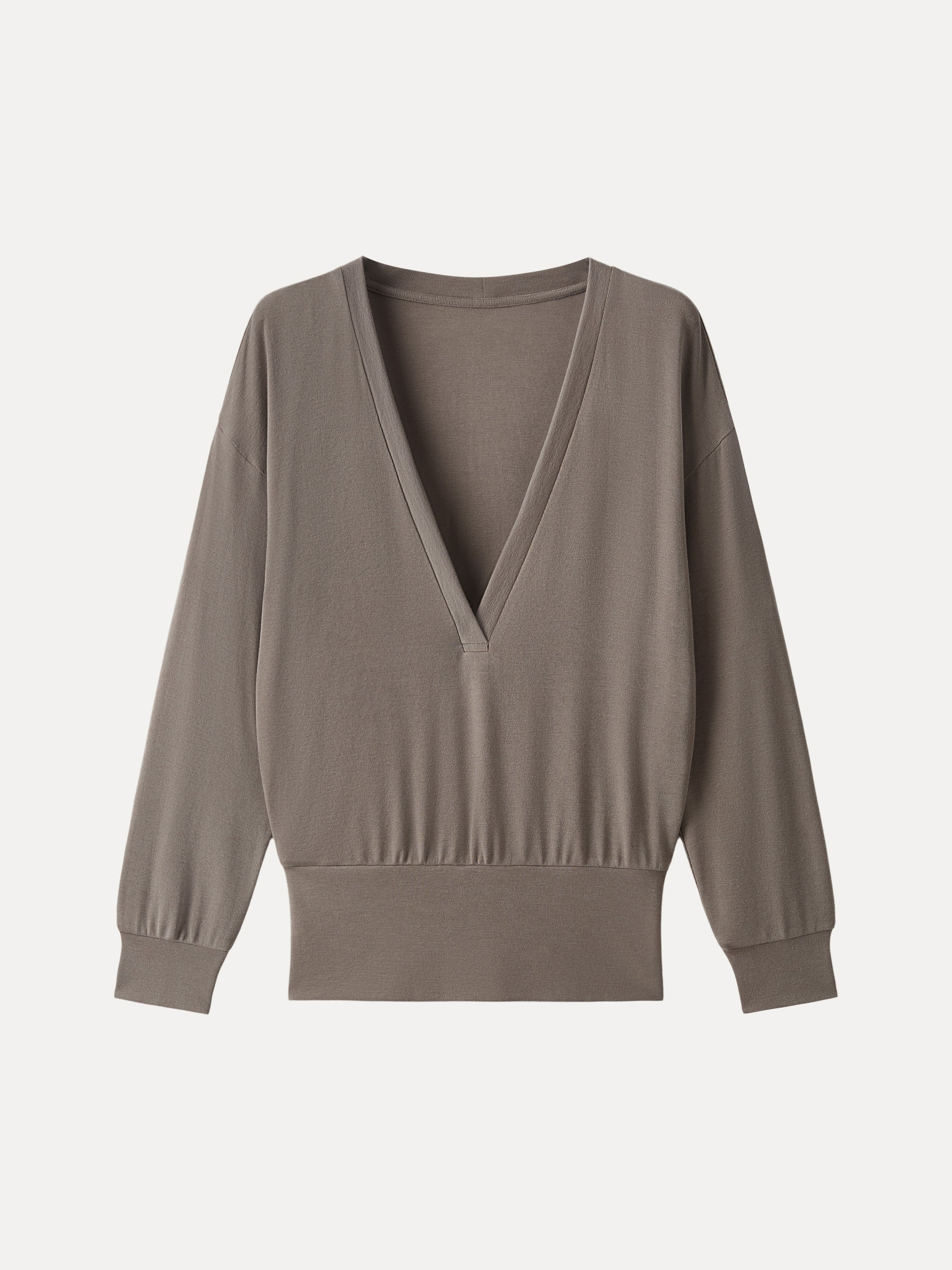 Lyocell Cashmere V-neck Drop Shoulder Top