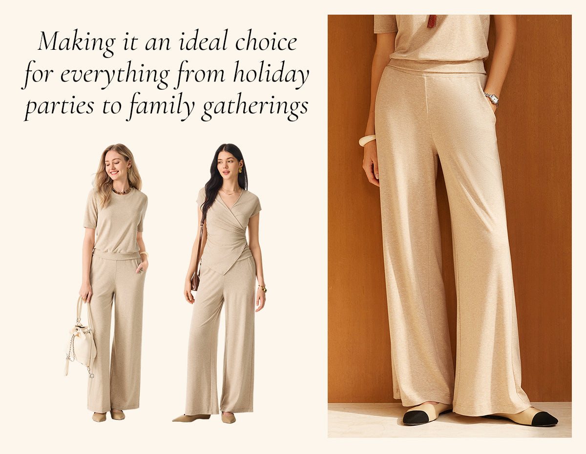 • Lyocell Wool Mid Rise Wide Leg Pull-on Pants with Pockets