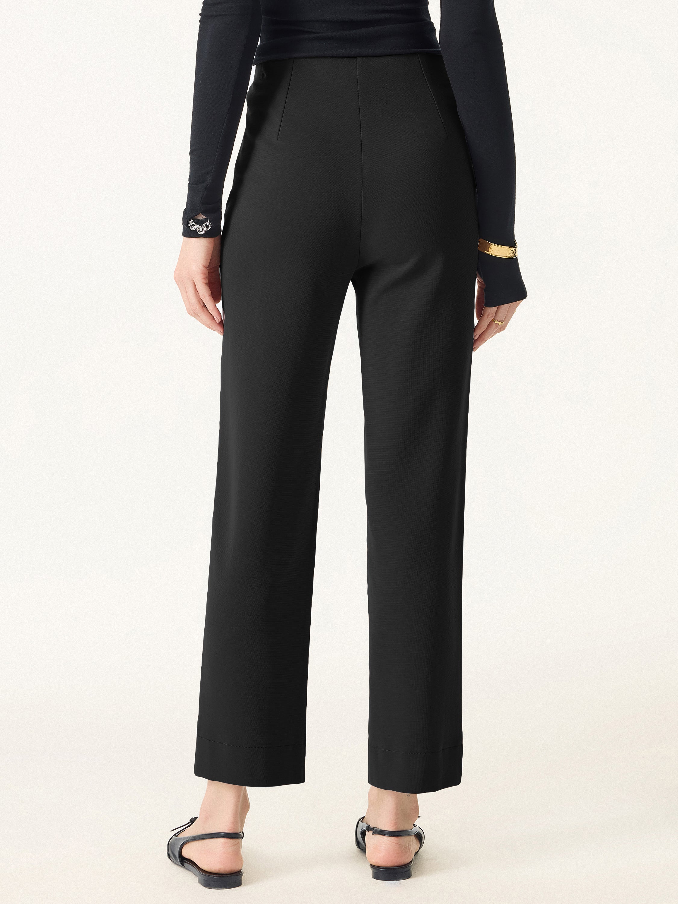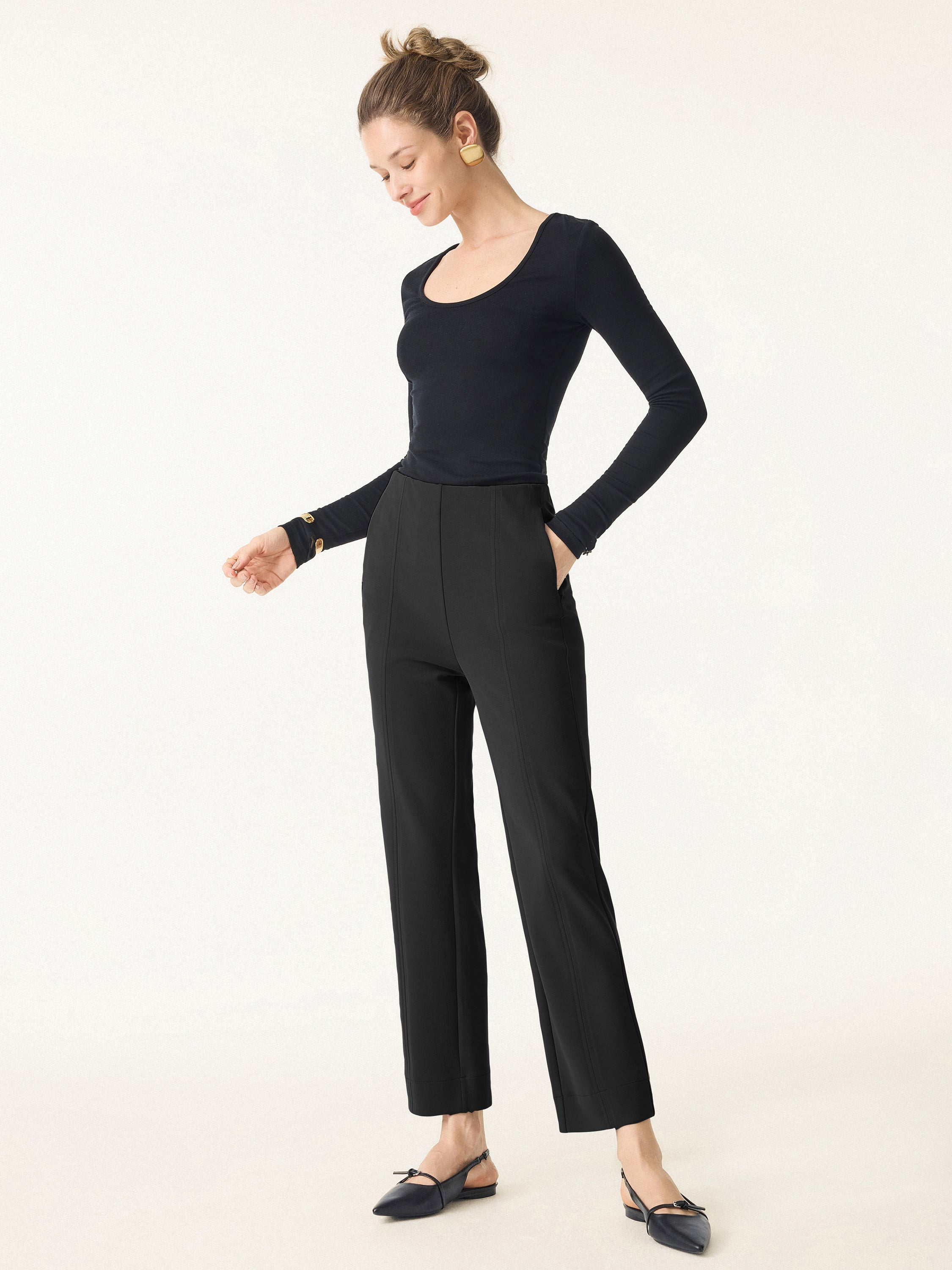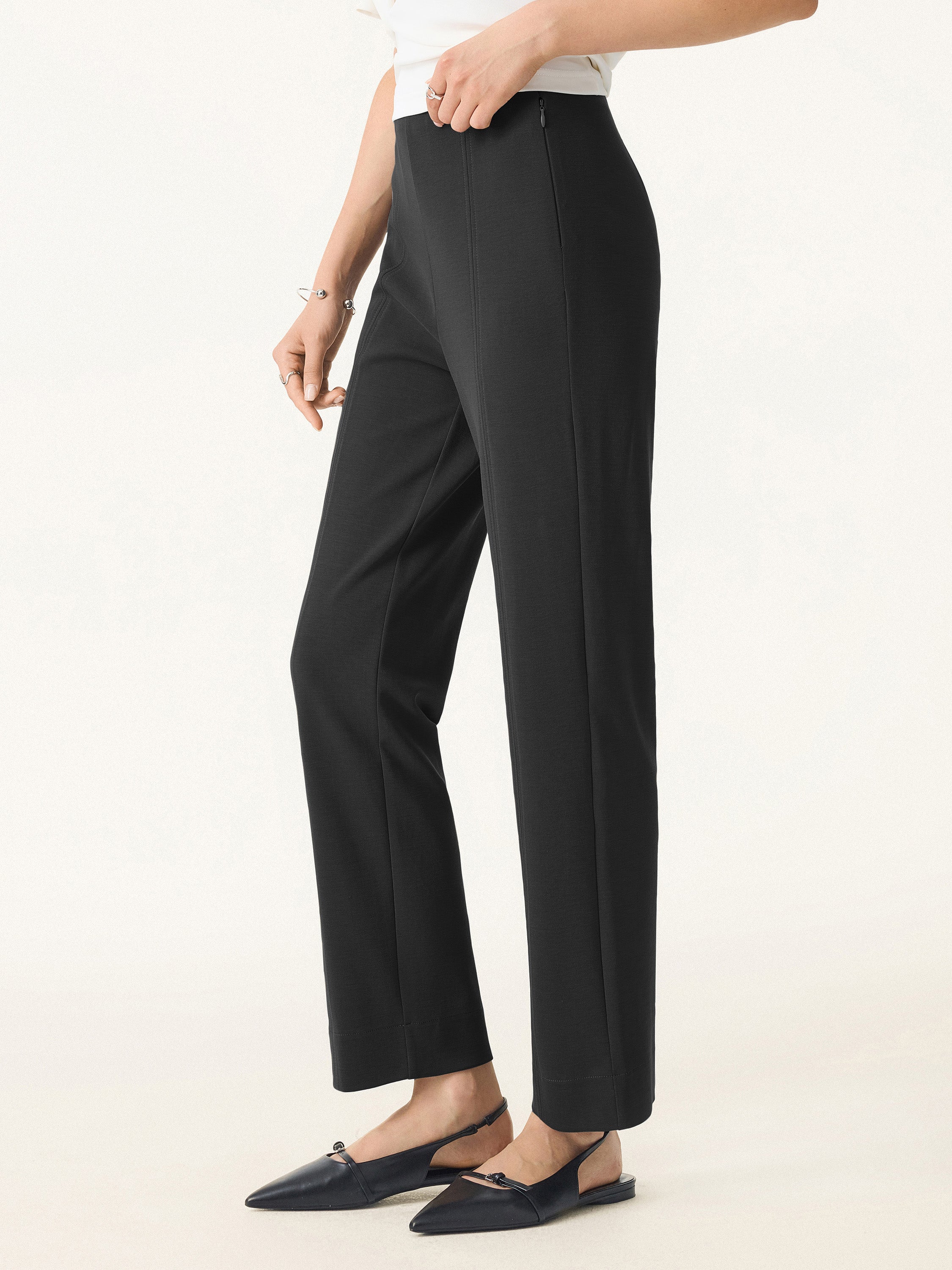 Sandwashed Mid Rise Slim Straight Pull-on Pants with Pockets