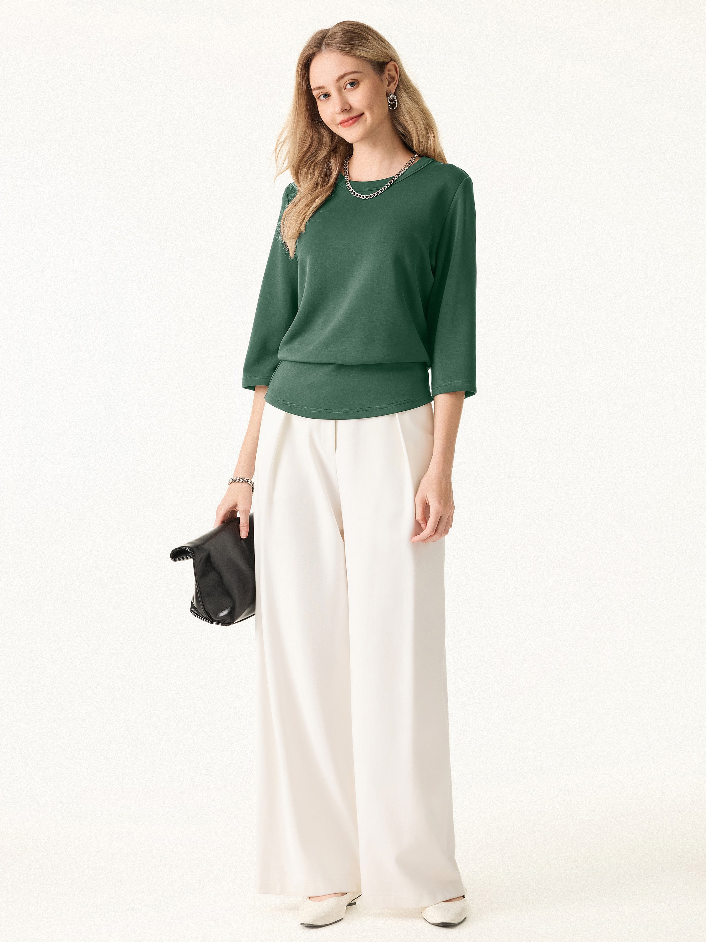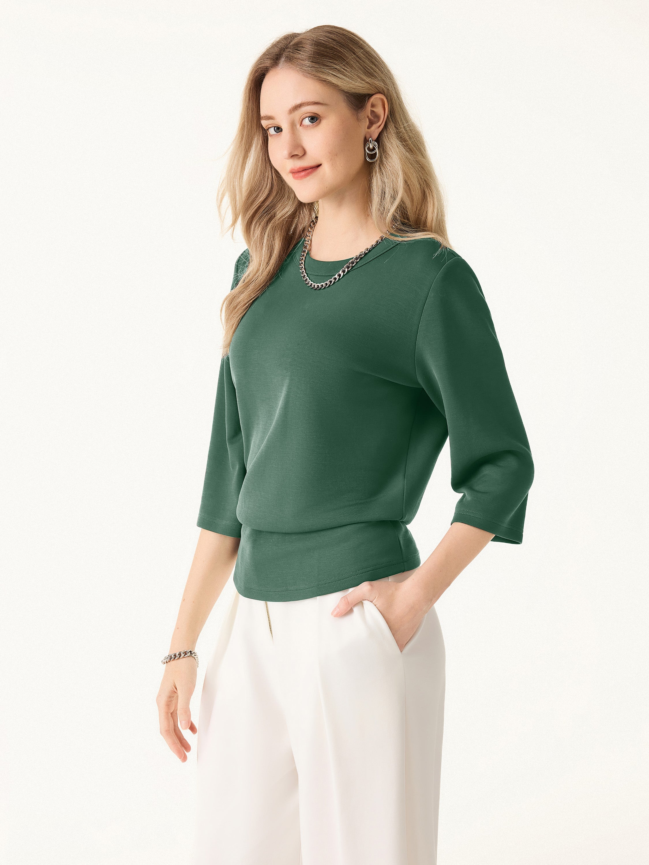 Sandwashed Spacer Crewneck 3/4 Sleeve Top