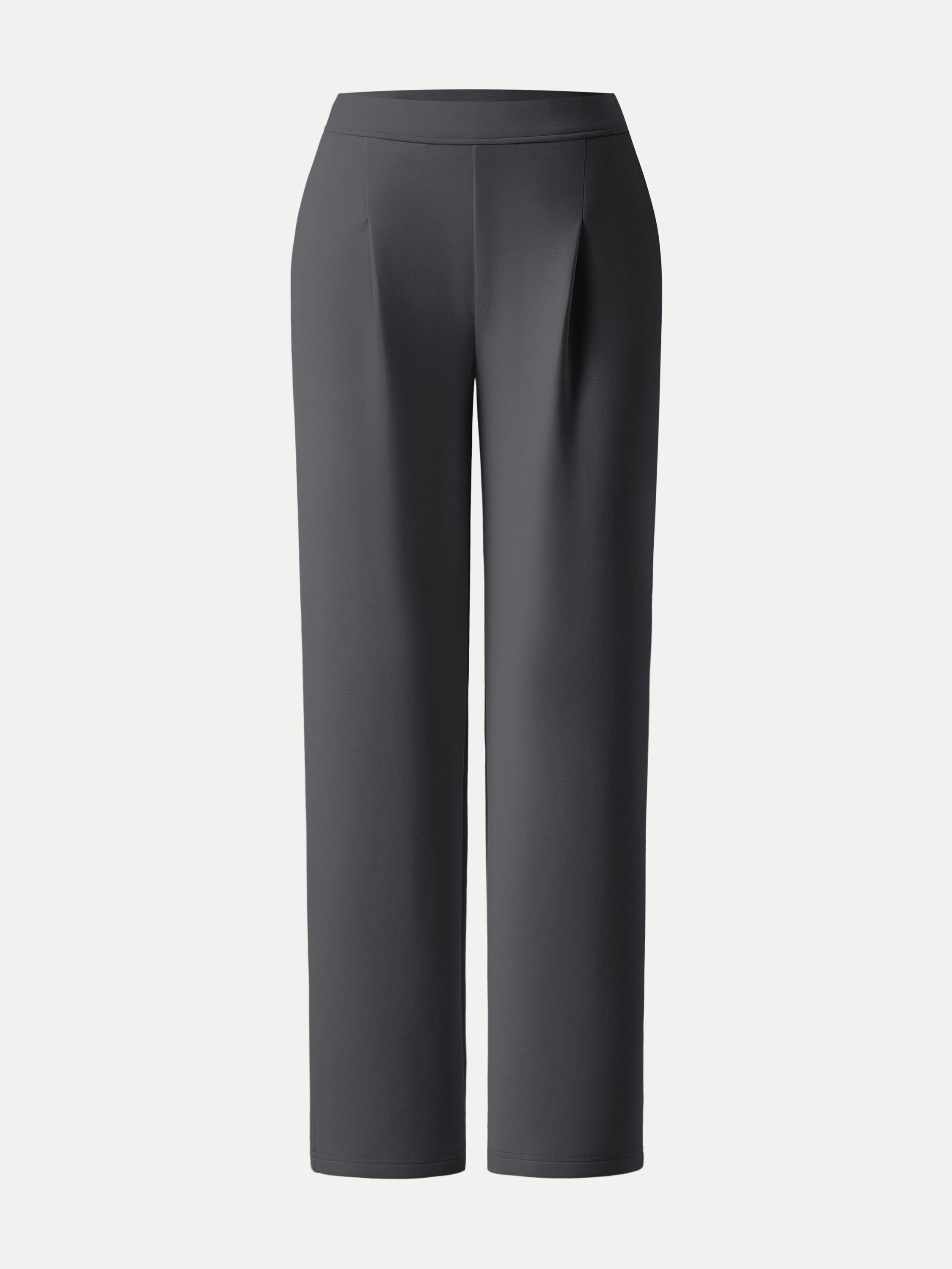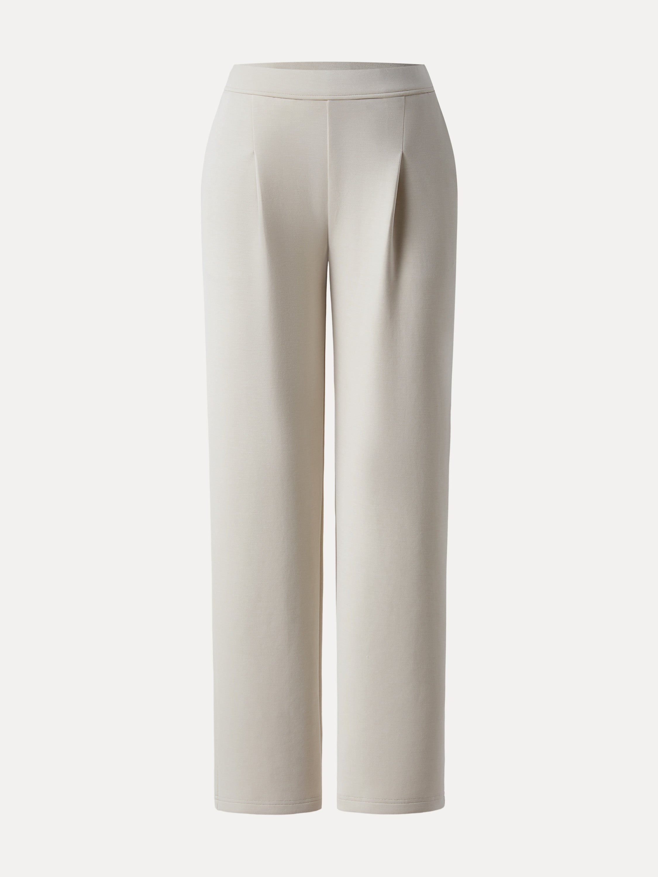 • Sandwashed Spacer Mid Rise Straight Leg Pull-on Trousers with Pockets