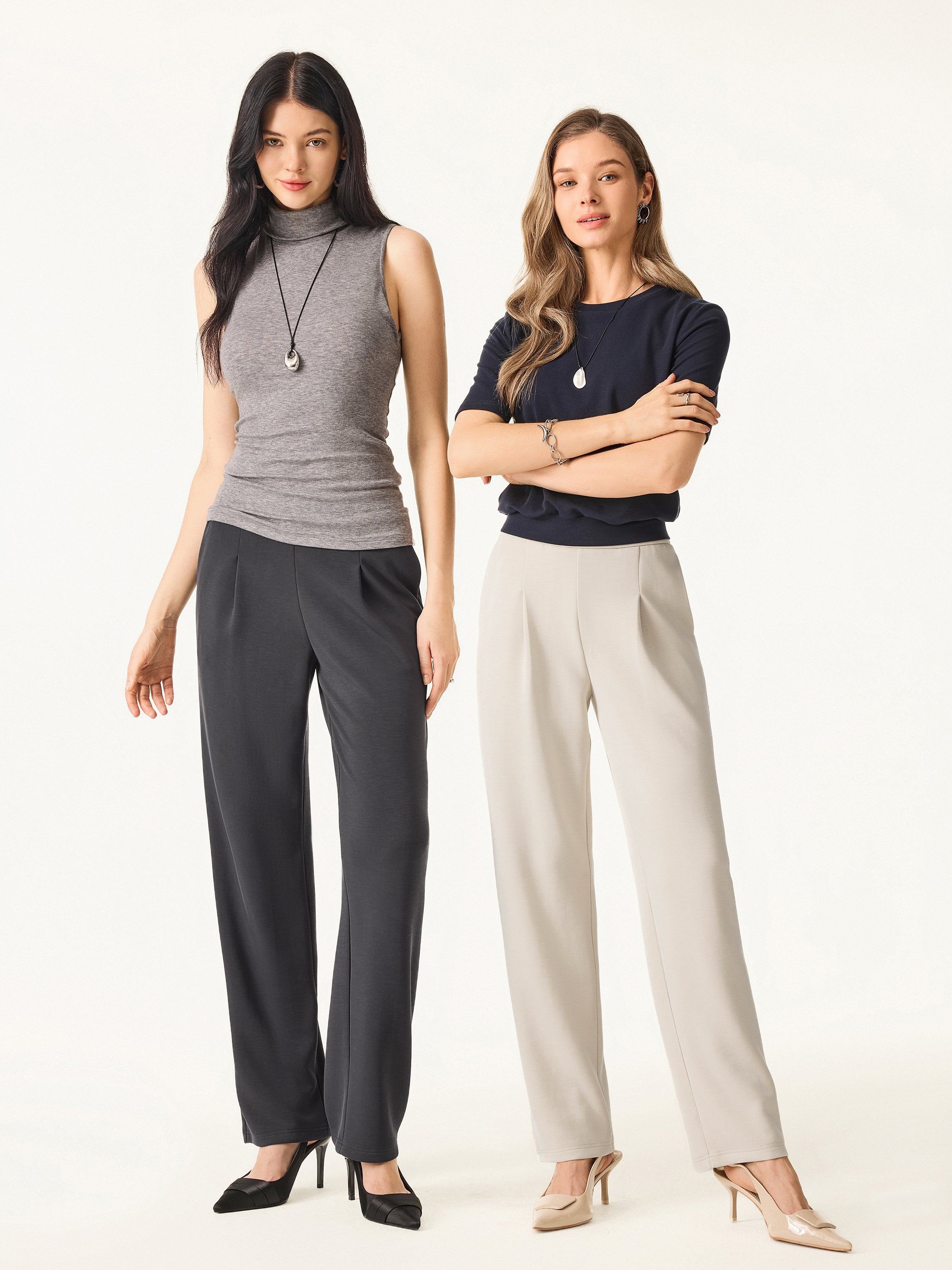 Sandwashed Spacer Mid Rise Straight Leg Pull-on Trousers with Pockets