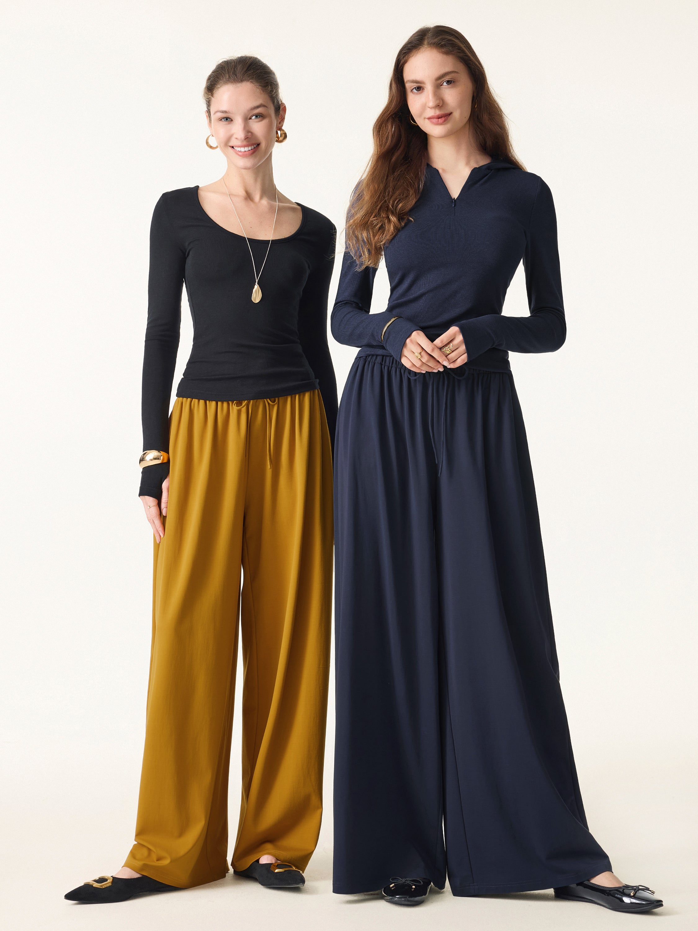 • Stretch Ponte Mid Rise Palazzo Pants with Pockets