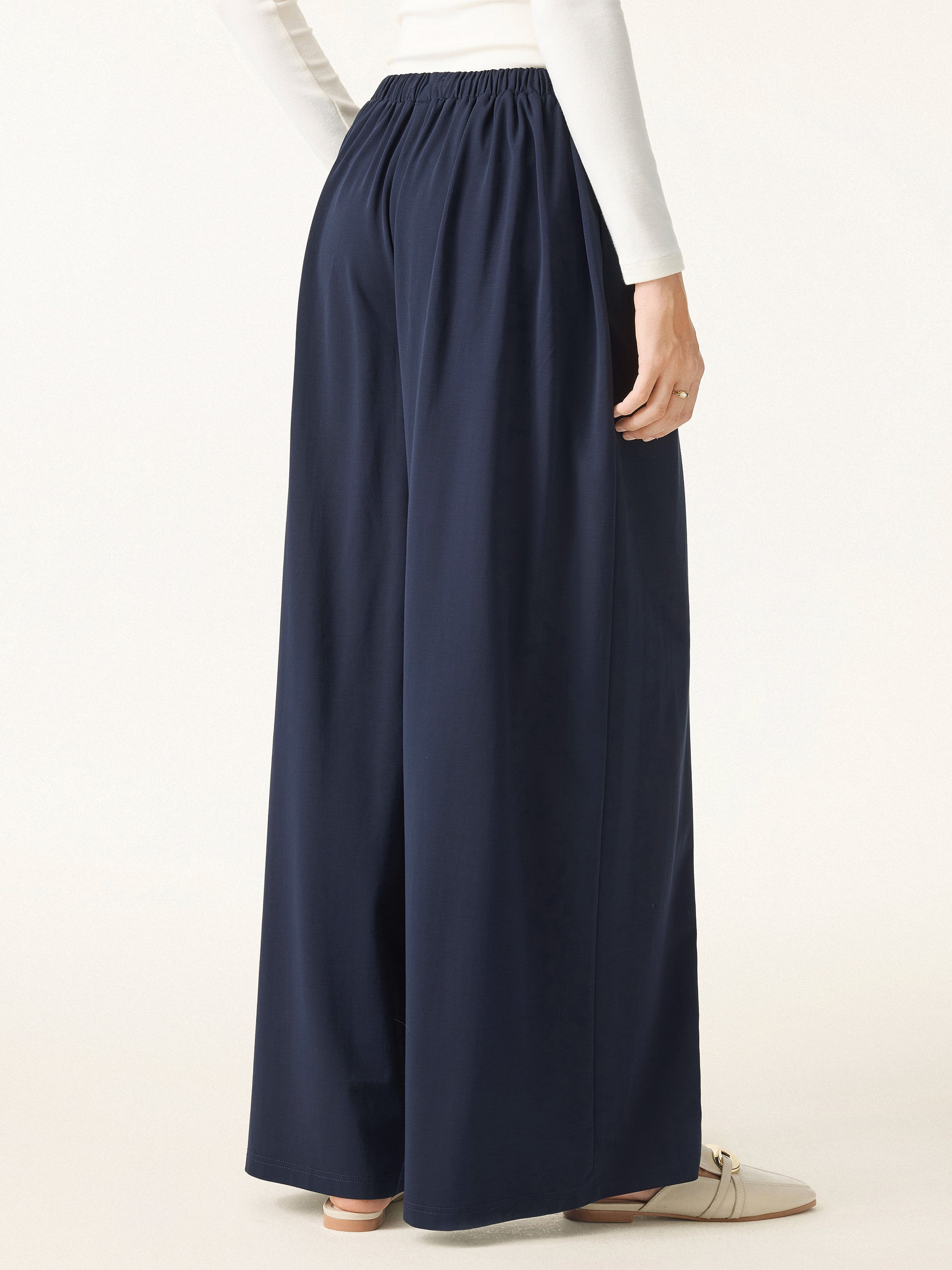 Stretch Ponte Mid Rise Palazzo Pants with Pockets