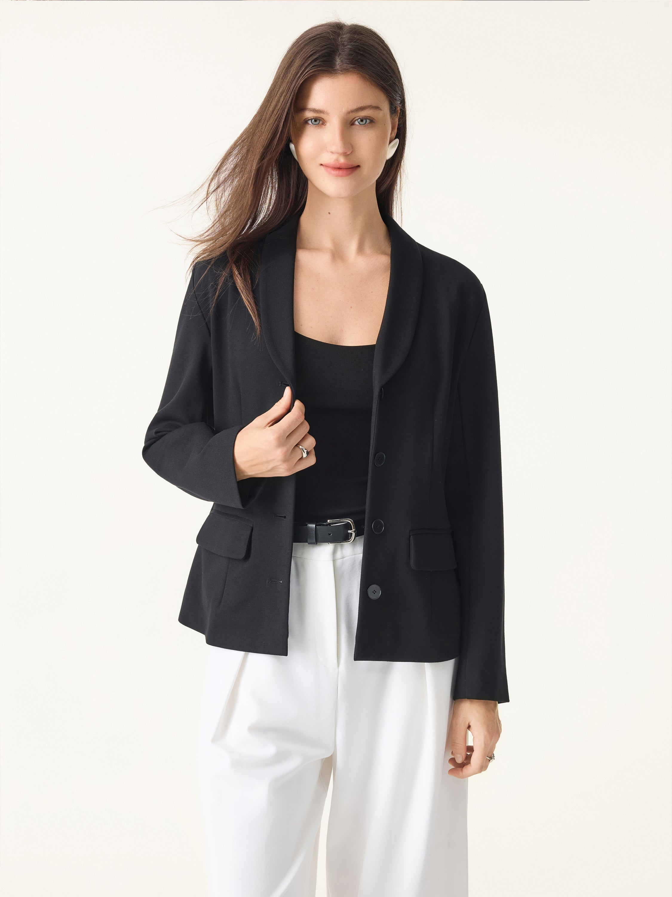 • Stretch Shawl Lapel Button Front Blazer with Pockets