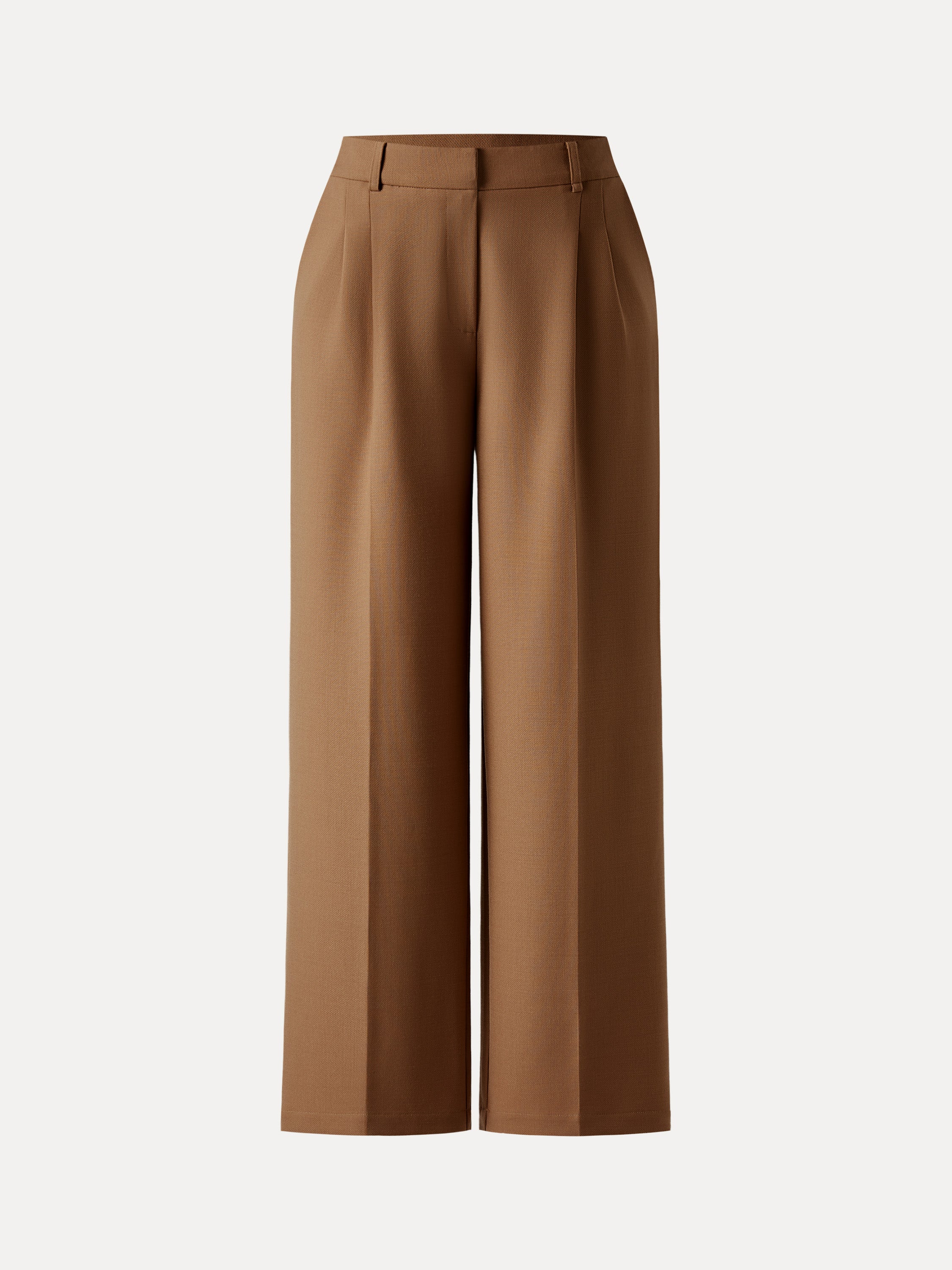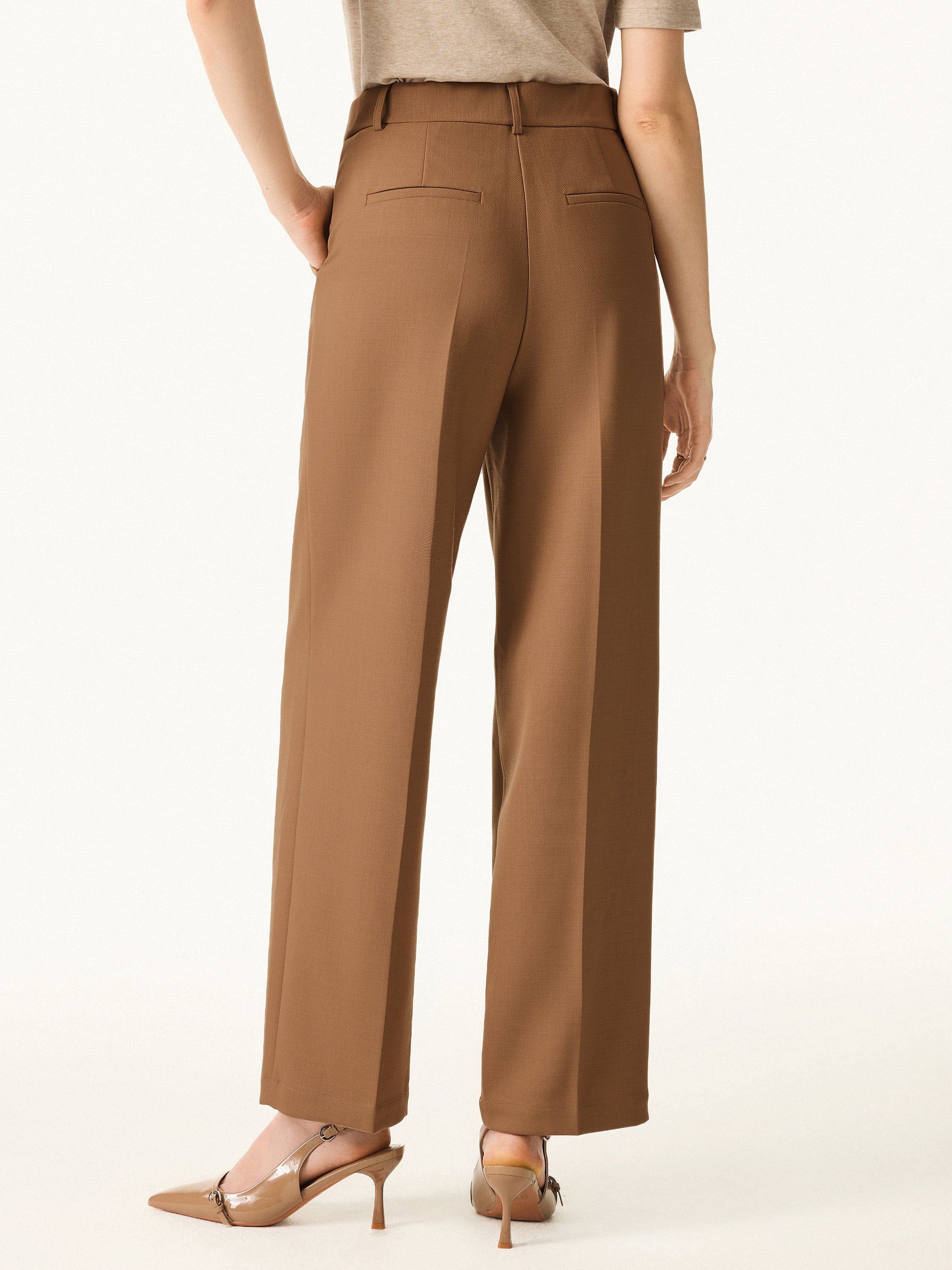 Stretch Wool High Rise Straight Leg Trousers with Pockets