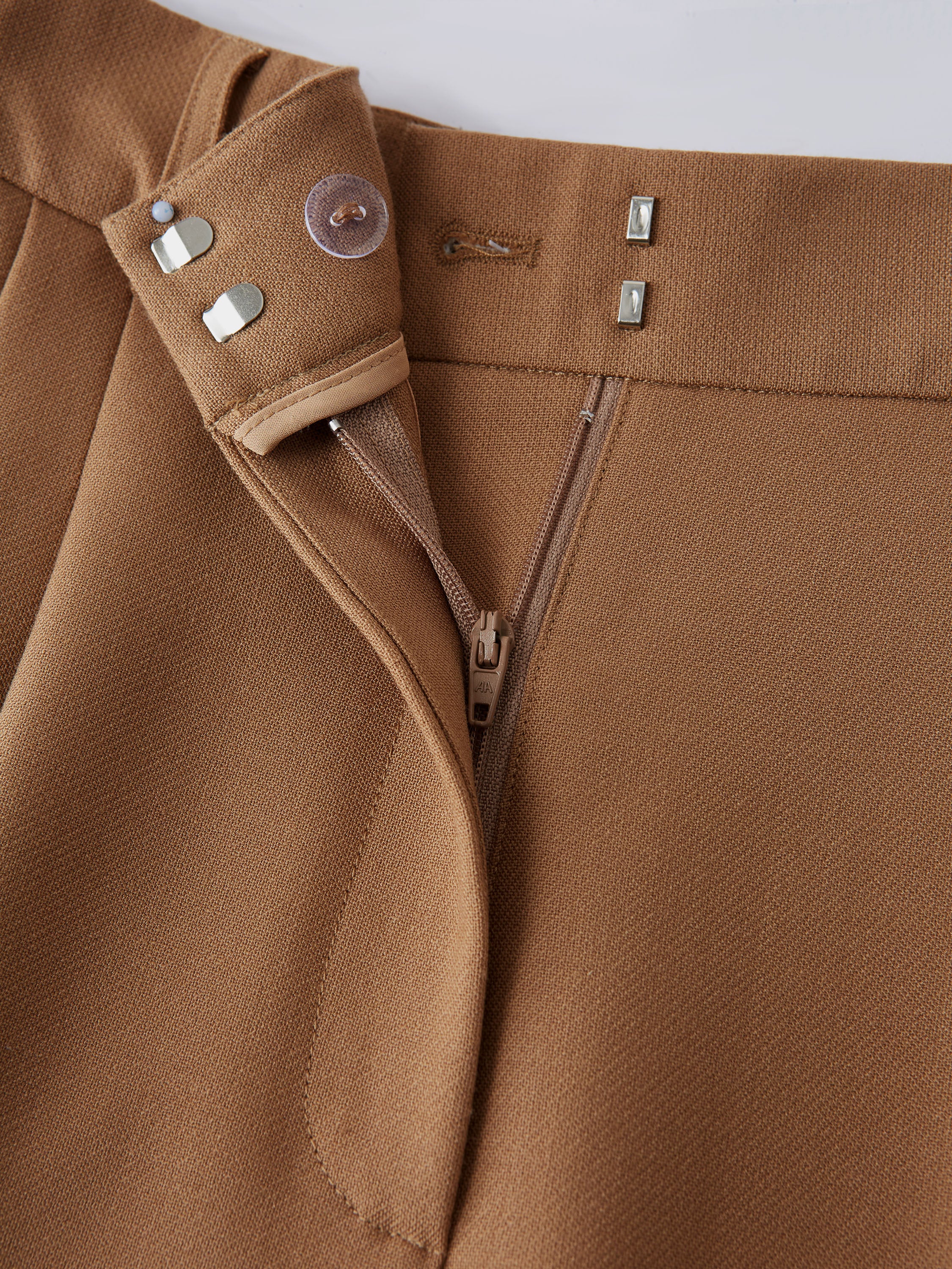 • Stretch Wool High Rise Straight Leg Trousers with Pockets
