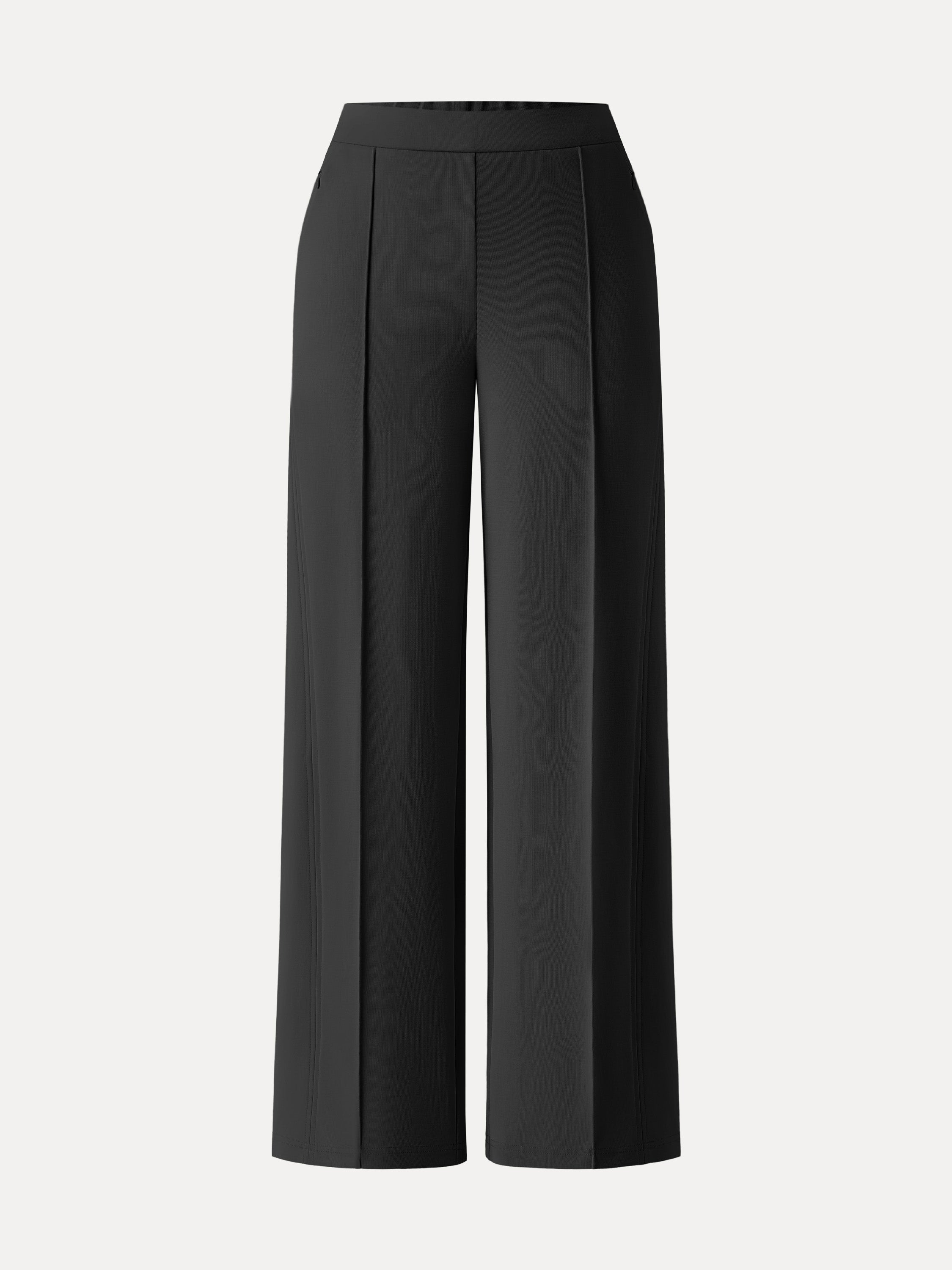Wrinkle-Resistant Mid Rise Wide Leg Pants with Pockets